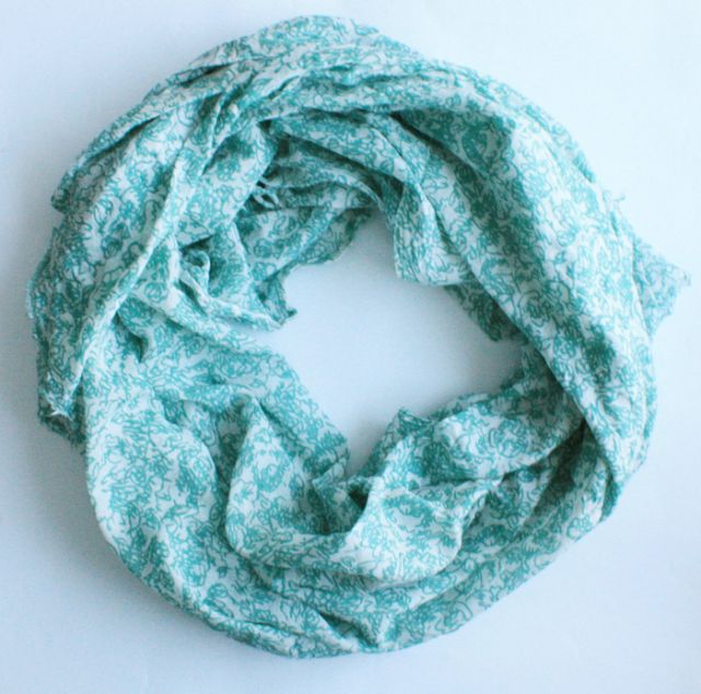 Duży, miękki szal marki NOA NOA. Wzory w odcieniu zgaszonej, stonowanej, turkusowej zieleni. Materiał oceniam na bawełnę.