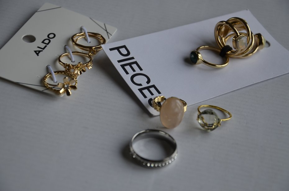 pierścionki, kolczyki (w niektórych brakuje zatyczek), bransoletka Heideman itd.;