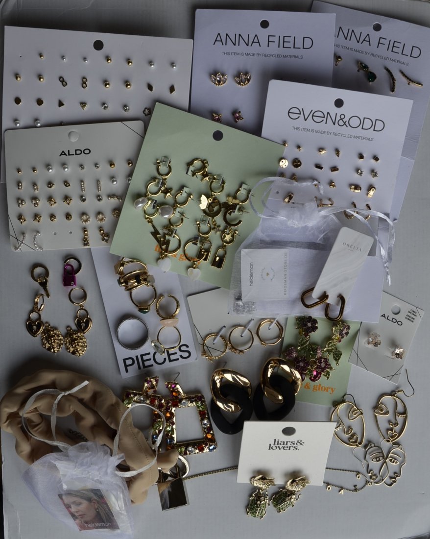 w zestawie jest również 6 nowych zestawów kolczyków na papierowych blistrach: Aldo, Pieces, Even & Odd, Anna Field (2 sztuki);