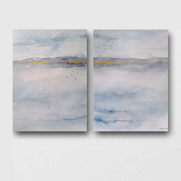 Dwie oryginalne akwarele, wykonane farbami akwarelowymi na grubym papierze akwarelowym 425 g/m2 . Prace są sygnowane. Sprzedawane jako komplet. Wymiary prac 32/24 cm x2. Kolory mogą się nieznacznie różnić od oryginału, sprzedawane bez oprawy, Zapraszam :)