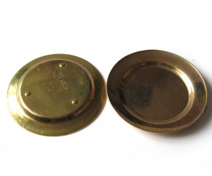 Dwa śliczne podstawki wykonane z mosiądzu. Gładkie, proste i klasyczne, idealne jako podstawka pod kwiat, świeczkę lub pojemniczki na drobiazgi. Polecam!