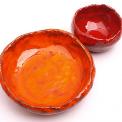 dwie miski - naczynka idealne na owoce, orzeszki, cukierki lub inne łakocie. przybliżone wymiary: średnica-22 i 14cm, wys-7 i 8cm. polecam serdecznie