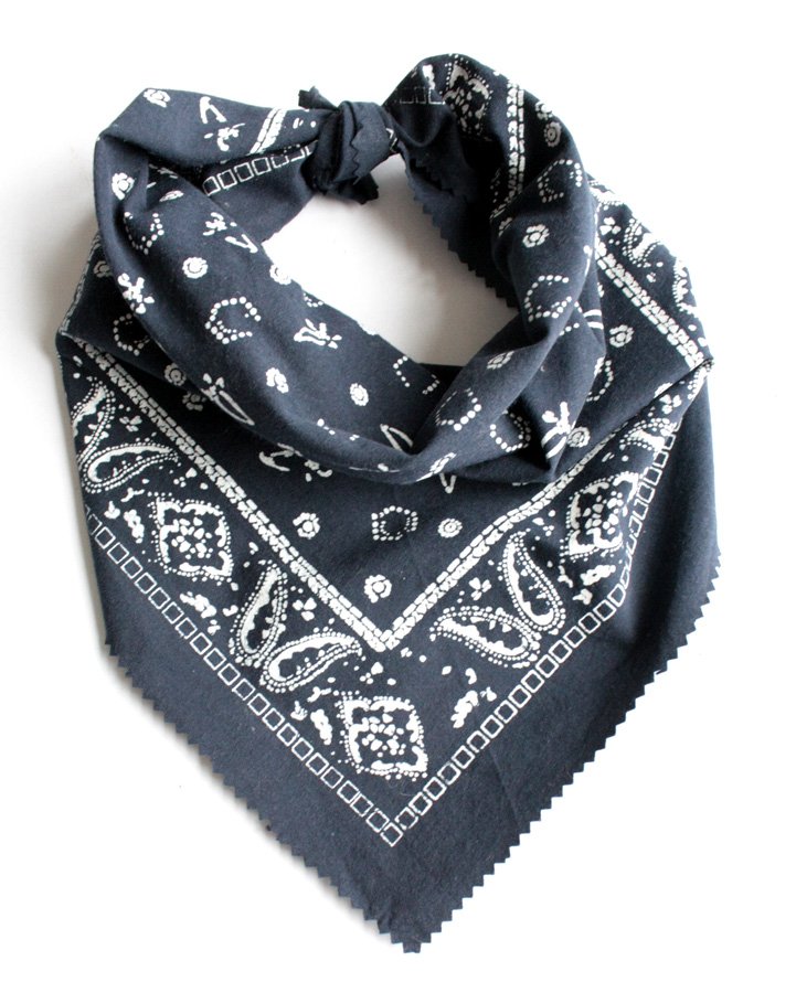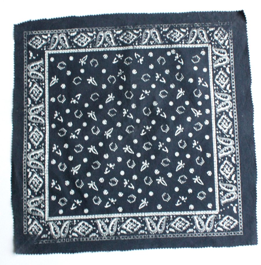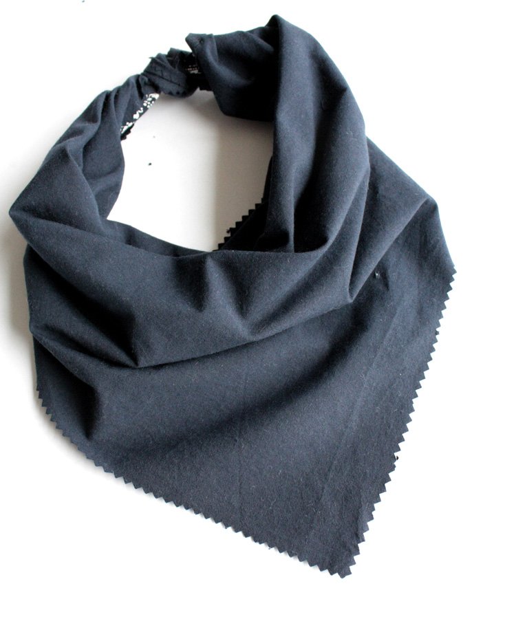 Dwustronna granatowa chusta o ciekawym wykończeniu, wykonana w mojej ocenie z bawełny lub wiskozy.