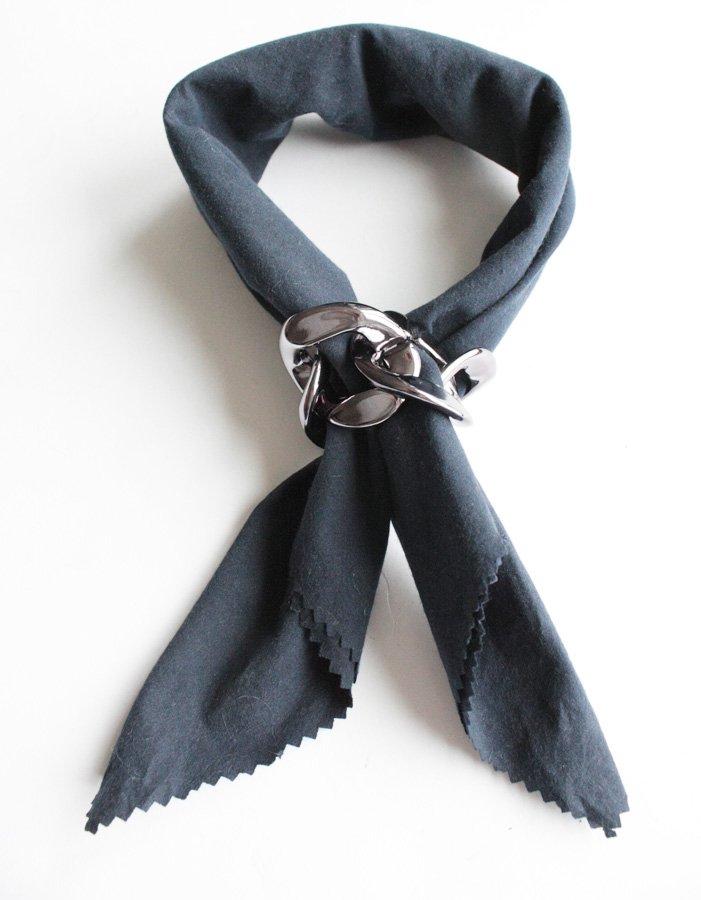 Srebrny uchwyt ze zdjęcia nie jest częścią chusty.