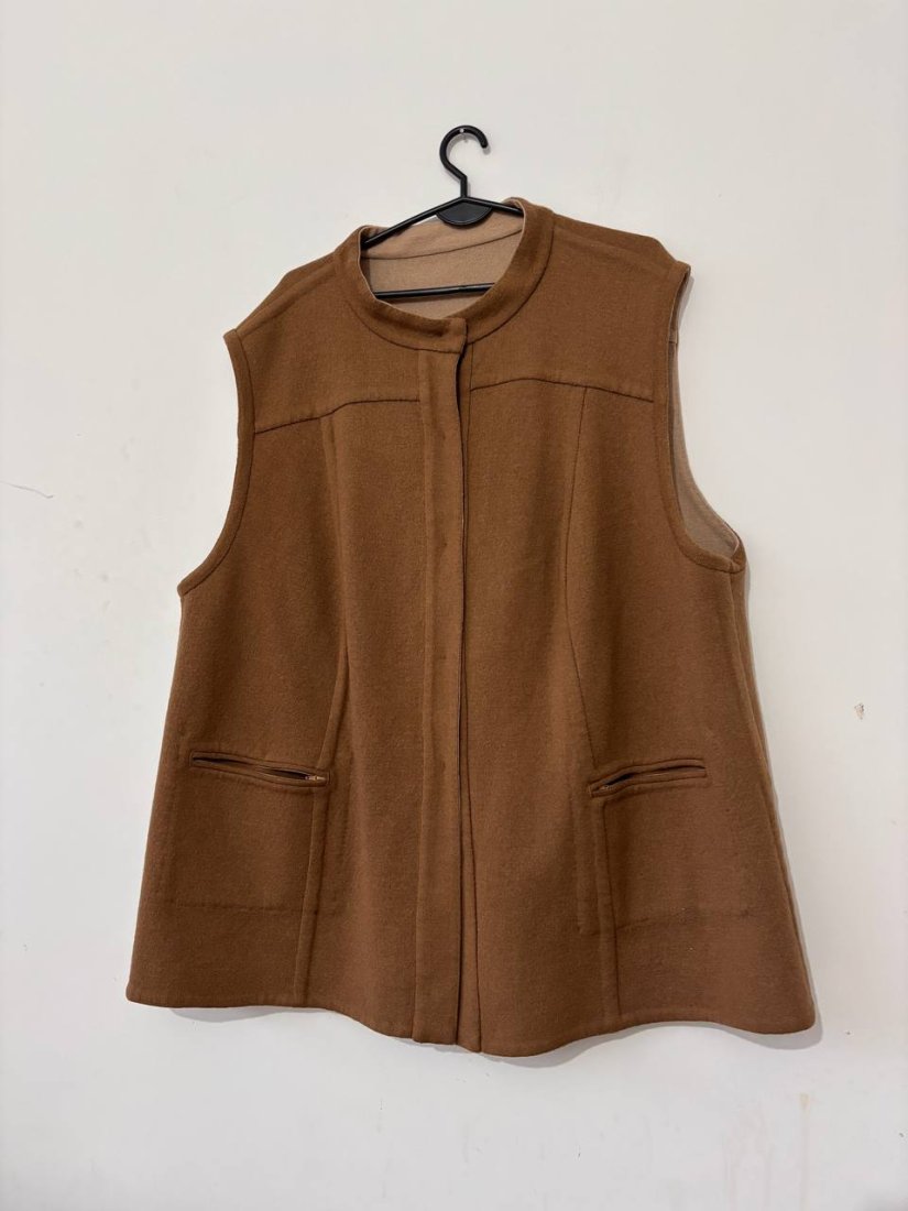 wool vest, women vest, sleeveless jacket, wool blend, beige vest, camel vest, reversible vest, winter vest, autumn vest, warm vest, classic vest, elegant vest, premium fabric, soft vest, cozy vest, ladies fashion, casual style, oversized vest, minimalist, timeless, soft wool, everyday wear, warm clothing, layering, fall fashion, winter outfit, neutral colors, versatile, chic, comfortable