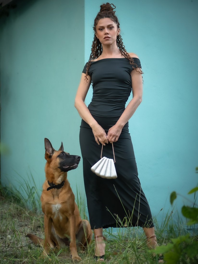 Minimalizm, który zaskakuje detalem. Ta dopasowana spódnica z długością 7/8 została zaprojektowana tak, byś mogła nosić ją na dwa sposoby – gładką stroną z przodu dla czystej, eleganckiej formy lub stroną z marszczeniem, by dodać stylizacji dynamiki i podkreślić talię.