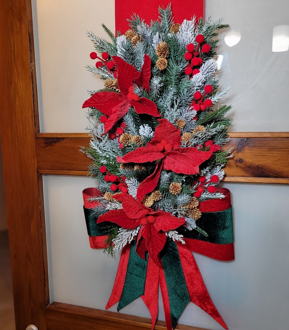 Elegancka dwustronna świąteczna dekoracja na drzwi.