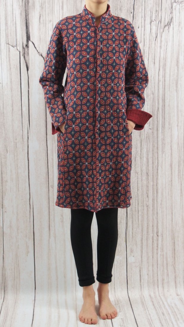 Piękny płaszczyk bawełniany pikowany podłużnie, dwustronny. O cudownym etnicznym wzorku.