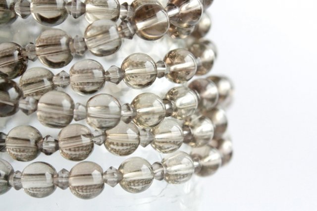 Piękny, długi naszyjnik z dymnych szklanych koralików. Można owinąć je dwa razy wokół szyi, układać na wiele sposobów. Można również nosić jako bransoletkę.