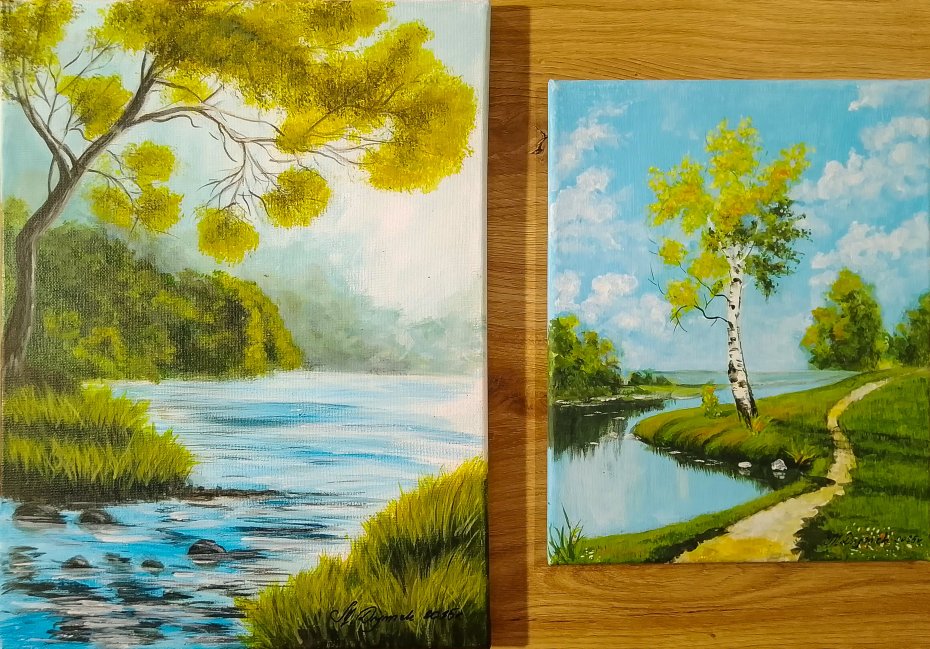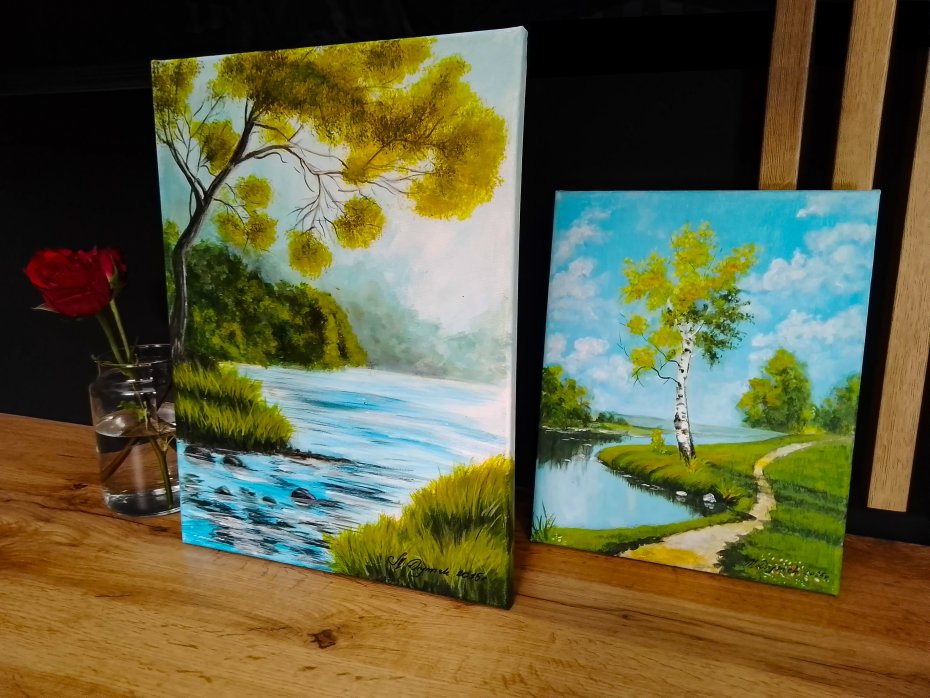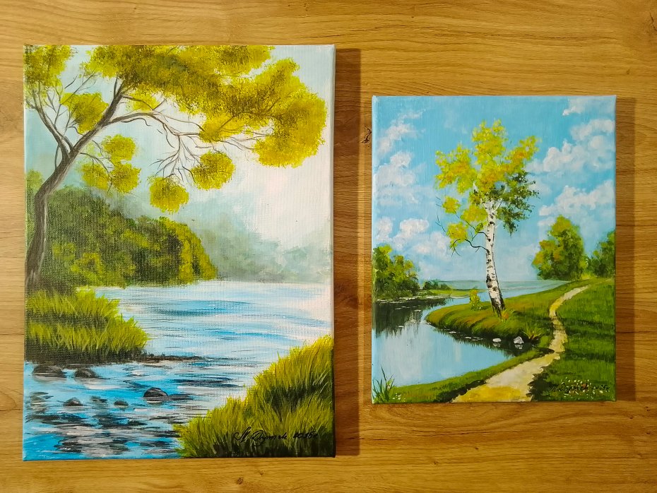 - Tematyka: Polski krajobraz z motywem wody i lasu. Obrazy emanują ciszą i nostalgią.
