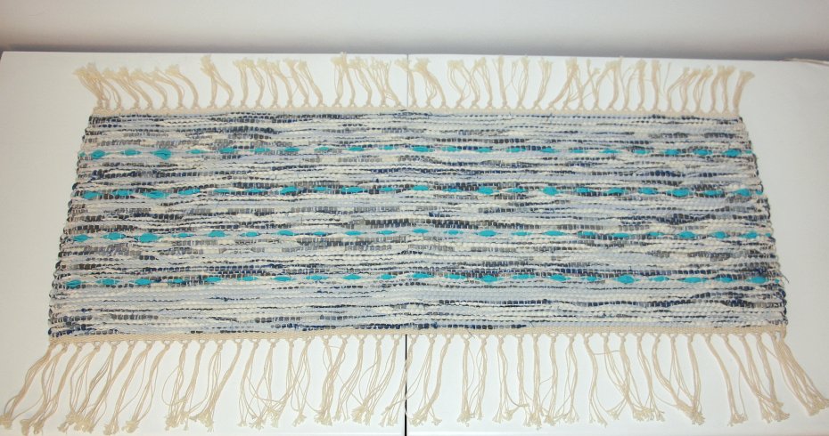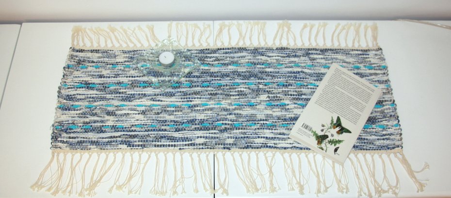 Dywanik, obrusik lub podkładka. Tkany na krośnie, tradycyjne szwedzkie rękodzieło.