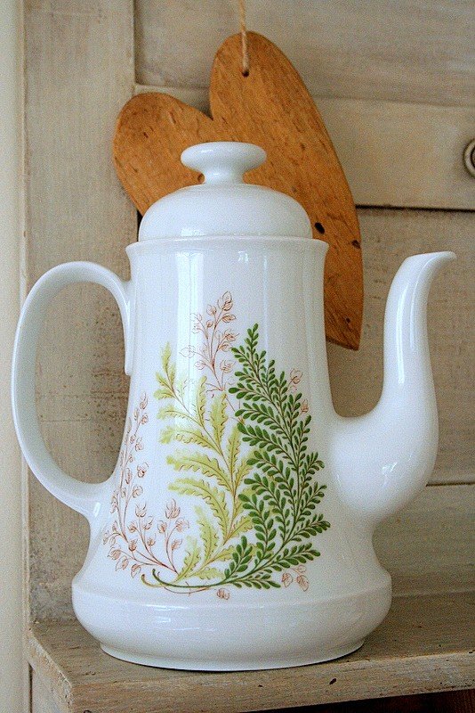 Uroczy biały porcelanowy dzbanek na kawkę lub herbatkę. Ozdobiony motywem leśnych roślinek. Porcelana niemiecka - stara Bavaria.