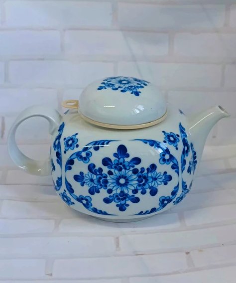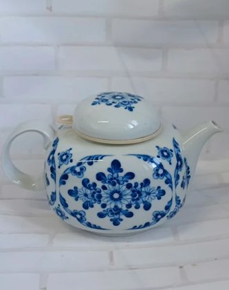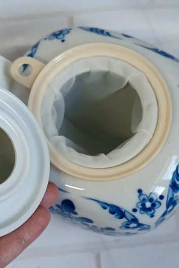 Śliczny, porcelanowy dzbanek na herbatę, imbryk z zaparzaczem. Sygnowany.