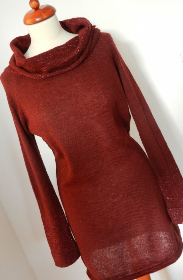 Ciepła, mięciutka, dzianinowa sukienka w pięknym bordowym kolorze.