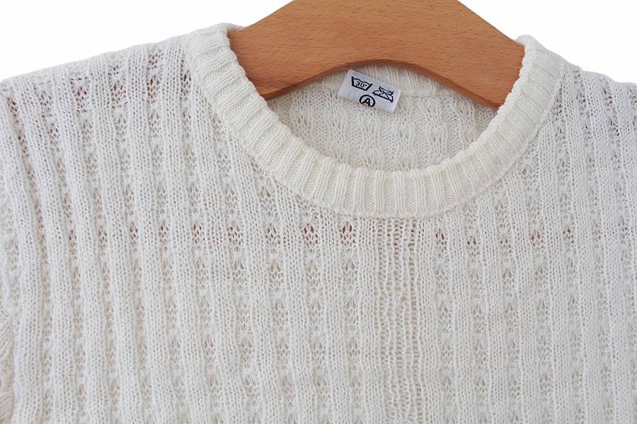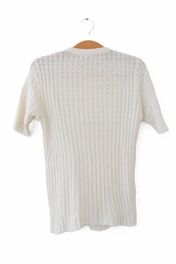 Bluzka vintage w kremowym kolorze, wykonana z dzianiny.