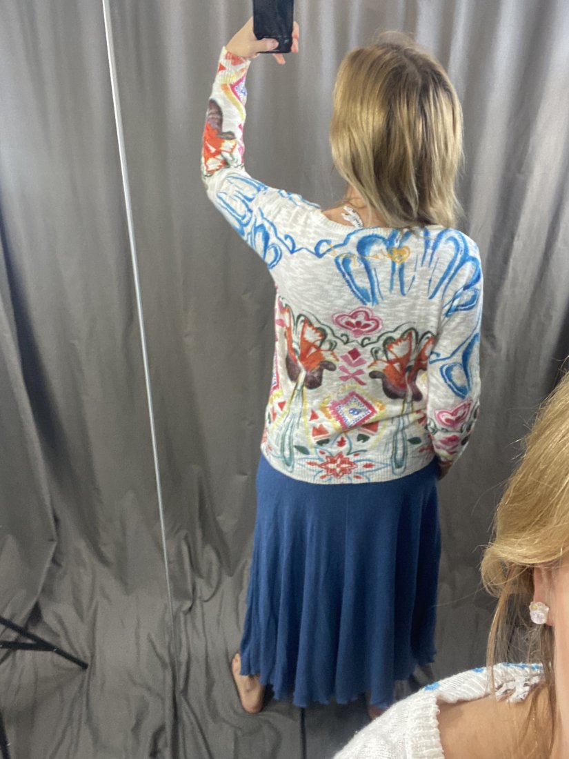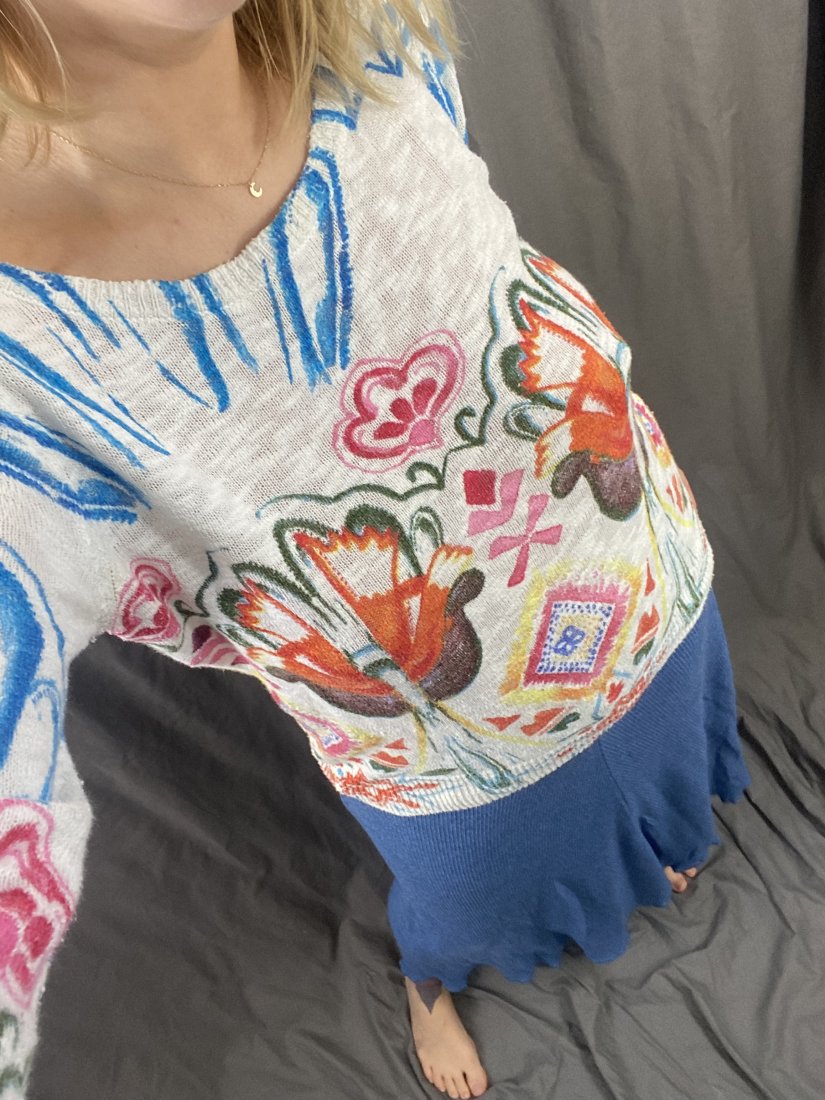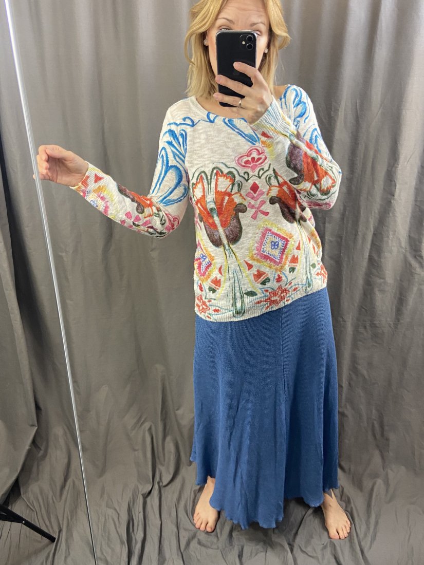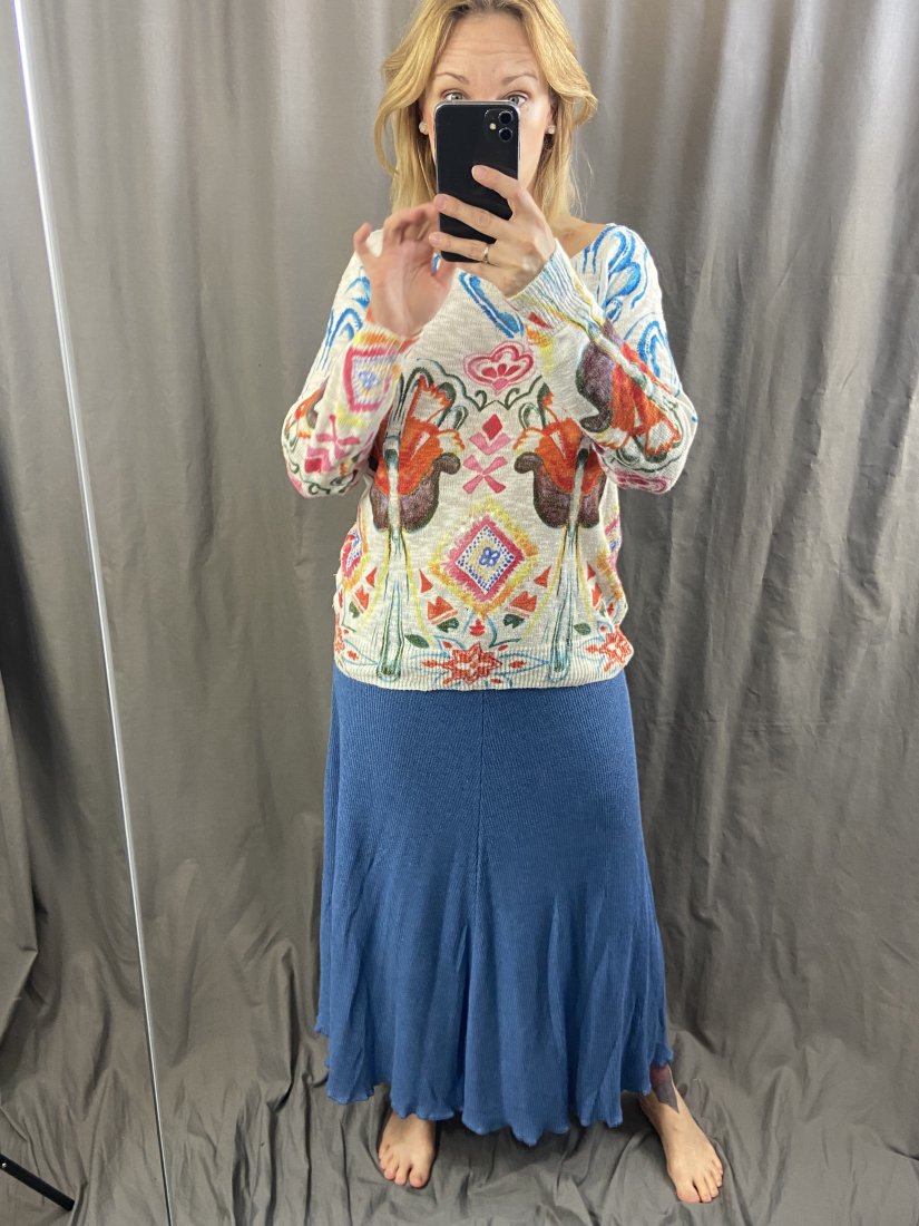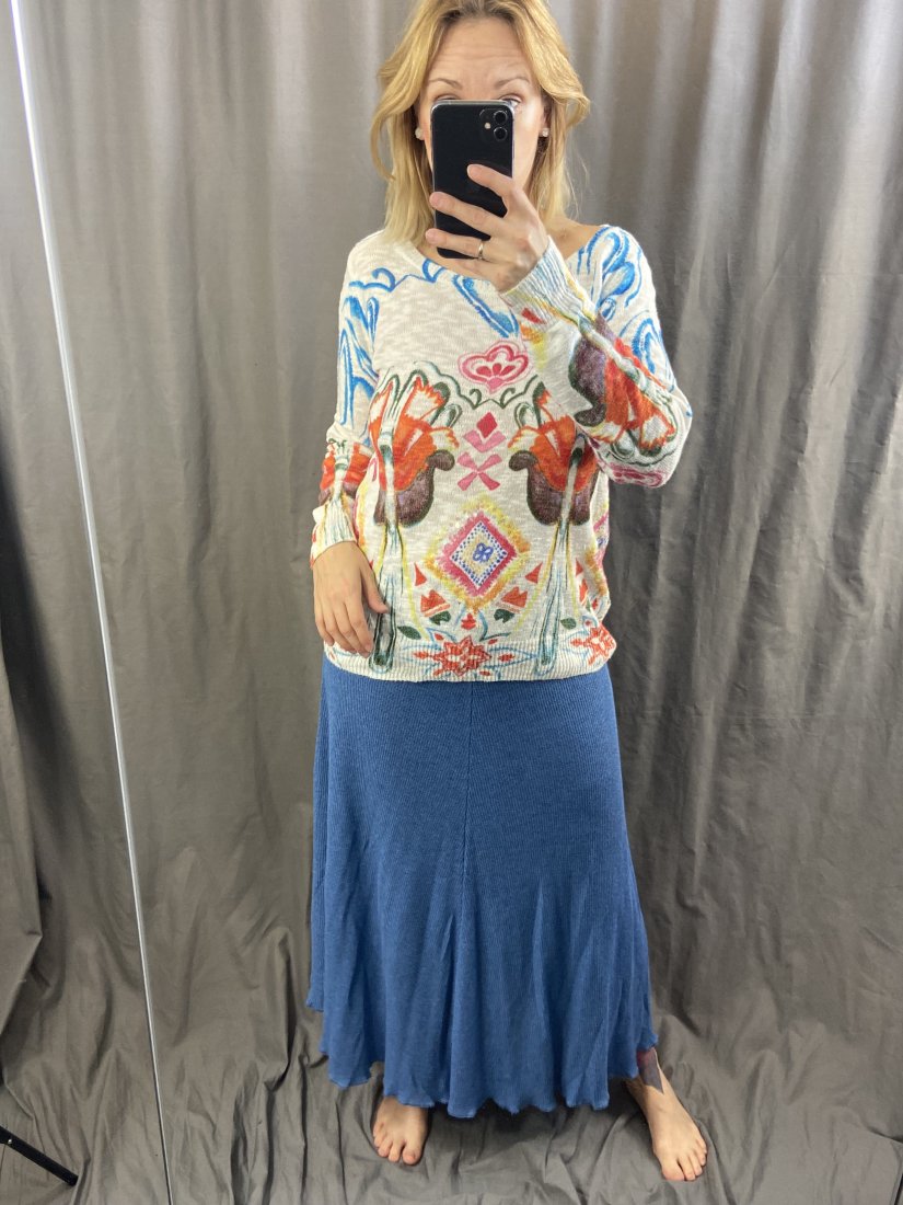 Hand made spódnica wykonana we Francji. Dzianina z bawełny i akrylu (50%). U góry wszyta guma.