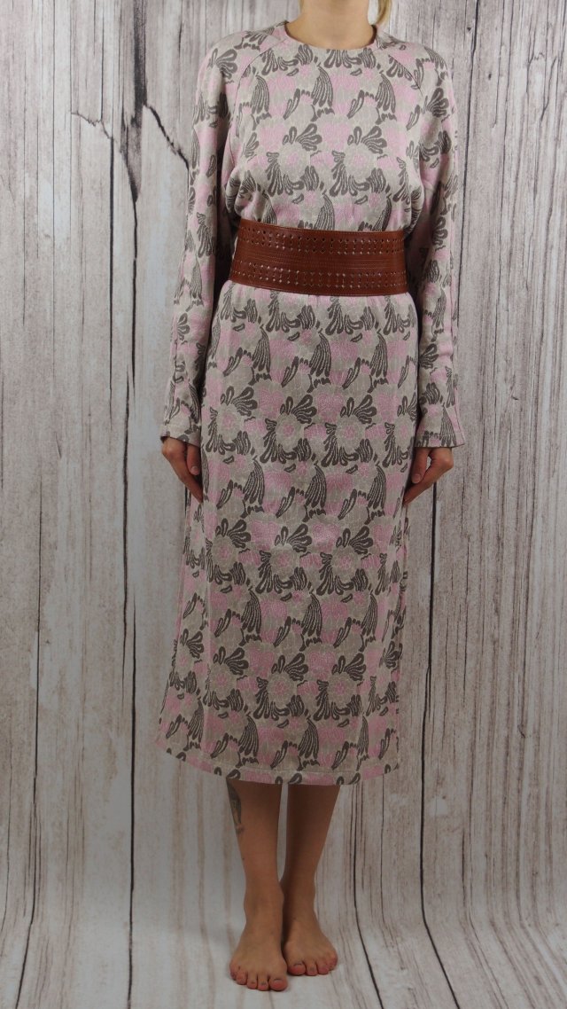 Świetna sukienka na okres jesień-zima. Dzianinowa (brak informacji o materiale, ale moim zdaniem to akryl). Idealna do ciężkich jesienno/wiosennych butów typu martens/trapery/trzewiki. Najlepiej wygląda spięta paskiem.