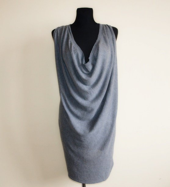 Efektowna tunika z cienkiej dzianiny, marki Bik Bok w popielatym kolorze. Materiał 50% wiskoza, 40% bawełna, 10% nylon. Ślady użytkowania, lekkie zmechacenie w kilku miejscach. Bardzo ładny przód,dłuższy od tyłu. Rozmiar XS, powinna pasować na 34 max 36. Niestety przy tym fasonie nie da się zrobić dokładnych pomiarów.
