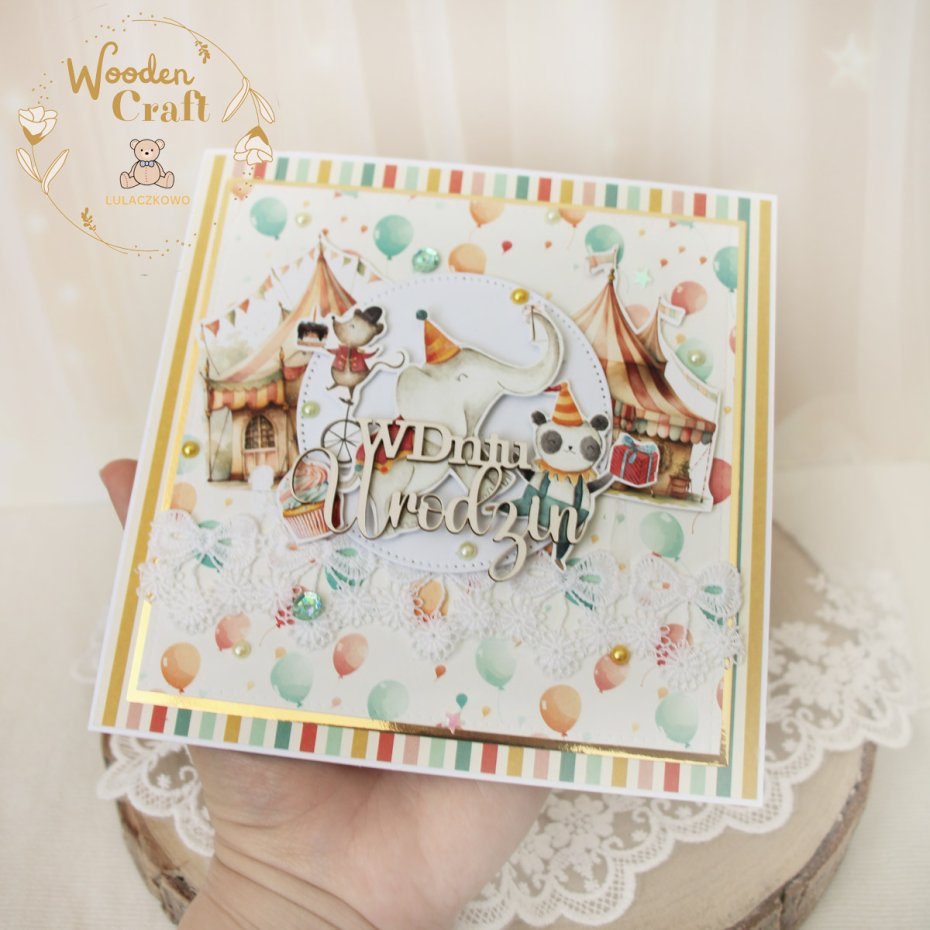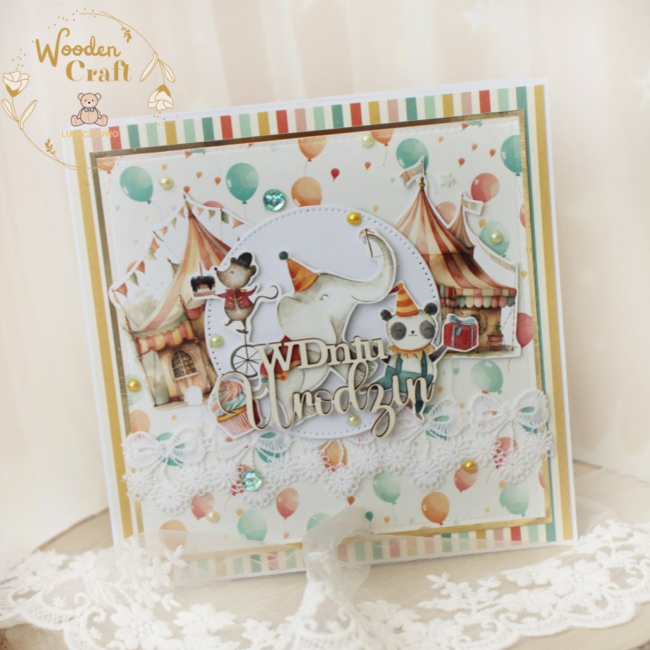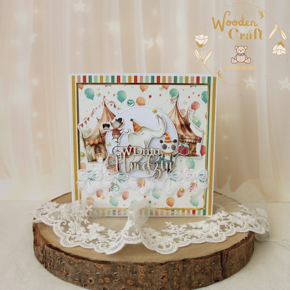 Tagi: #kartka na roczek, #kartka urodzinowa, #kartka z motywem cyrku, #prezent na urodziny