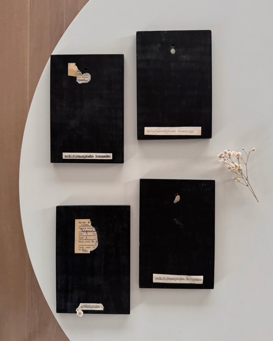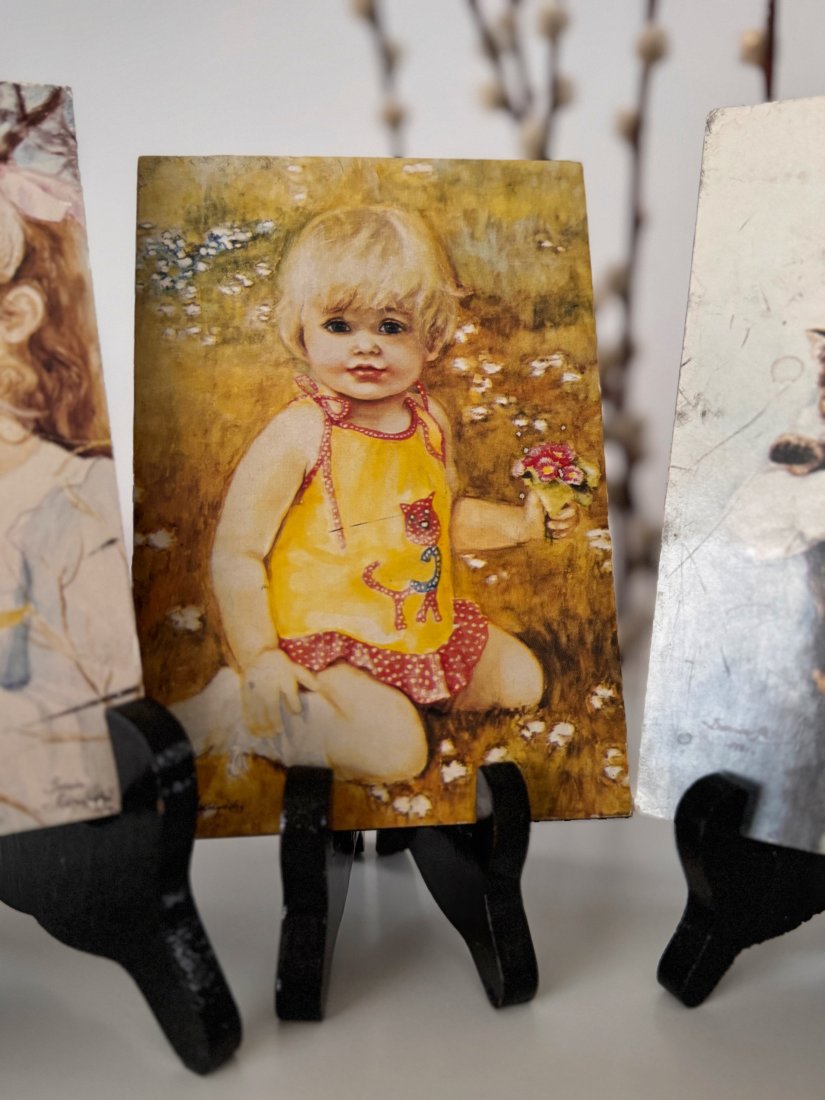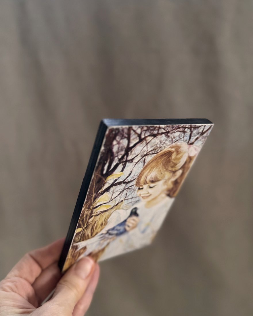 Obrazek na deseczce, reprodukcja z malarstwem dziecka Danuty Muszyńskiej-Zamorskiej.