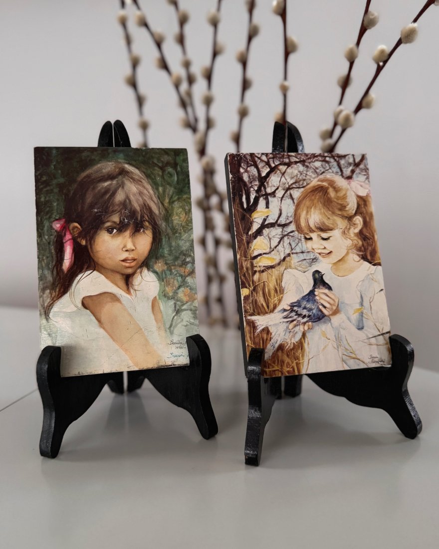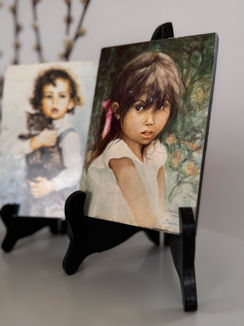 Obrazek na deseczce, reprodukcja z malarstwem dziecka Danuty Muszyńskiej-Zamorskiej.