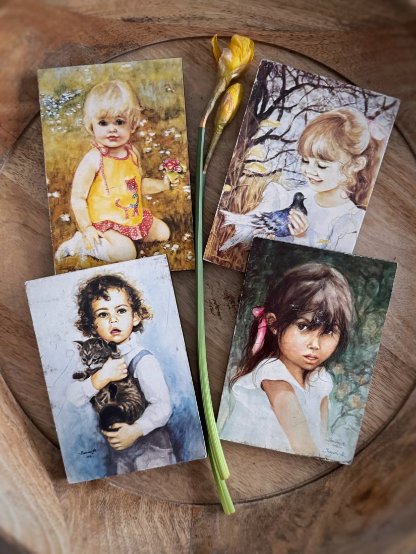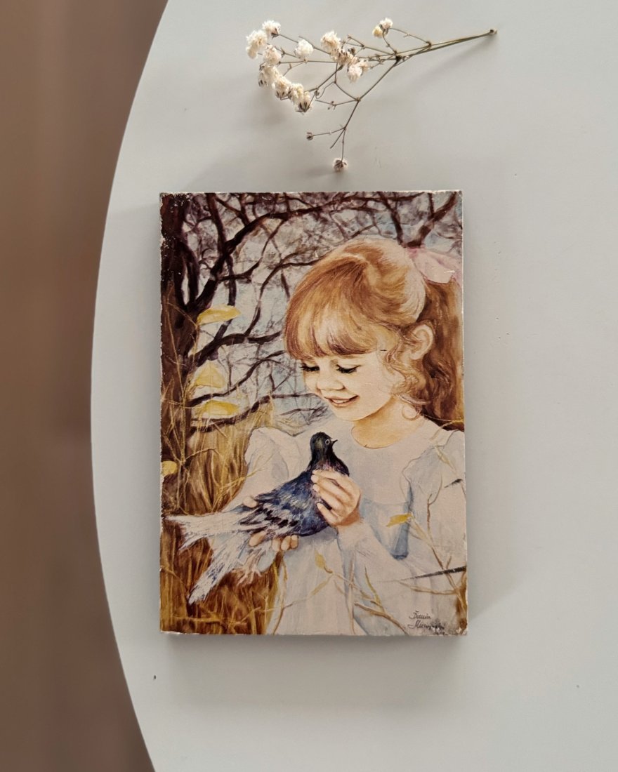 Obrazek na deseczce, reprodukcja z malarstwem dziecka Danuty Muszyńskiej-Zamorskiej.