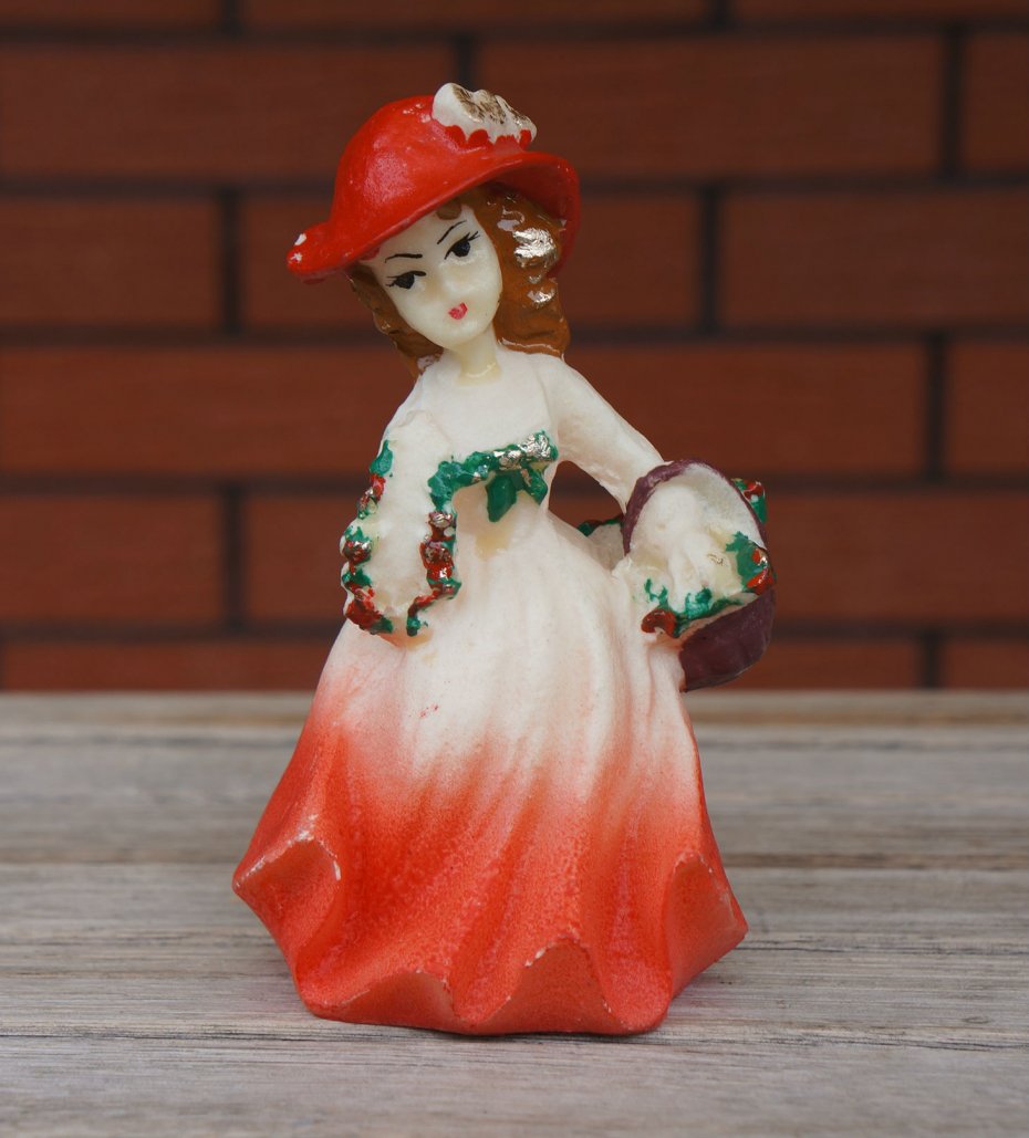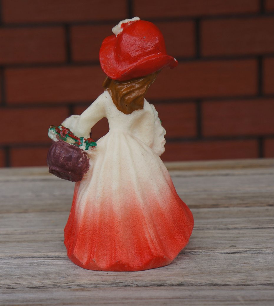 Ładna figurka przedstawiająca dziewczynkę z koszykiem. Trudno powiedzieć z jakiego tworzywa jest zrobiona. Przedmiot nie jest nowy. Stan dobry.