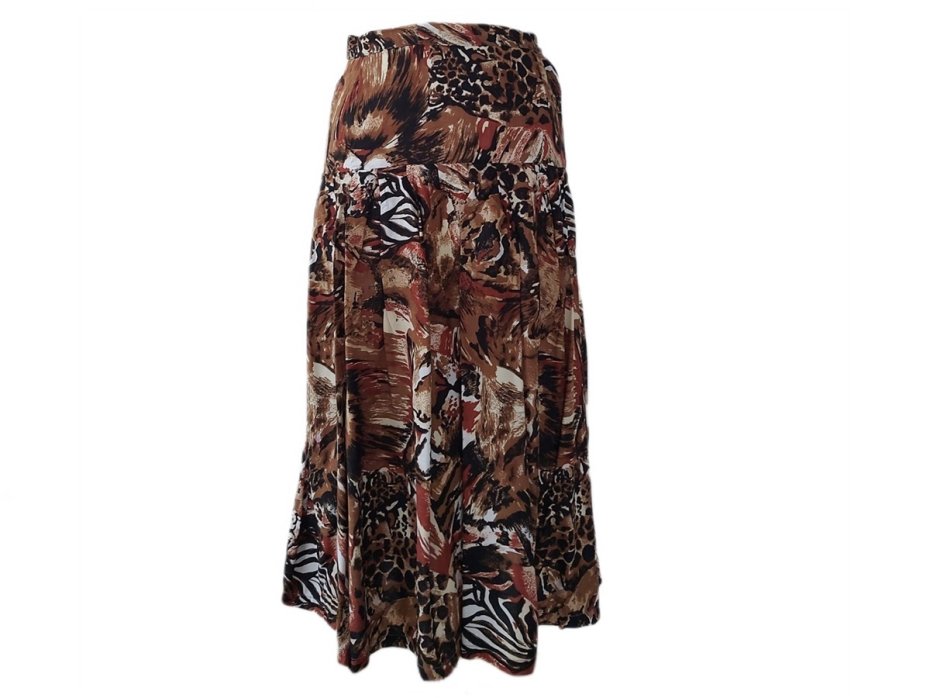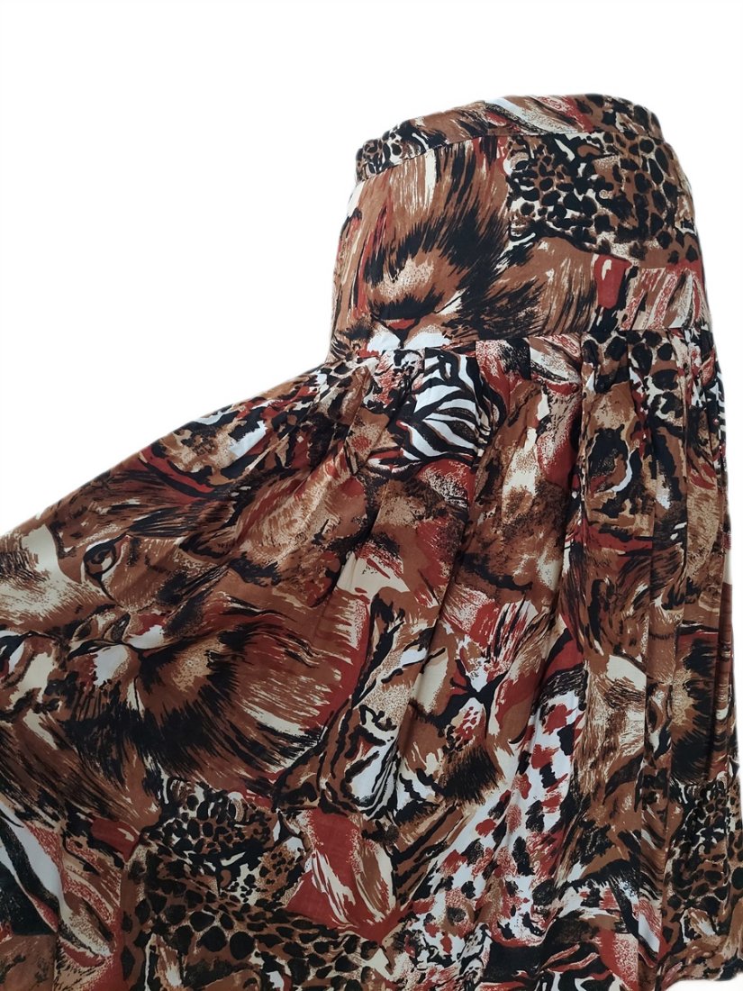 Spódnica z karczkiem, dół plisowany. Deseń: panterka, zebry, lwy.