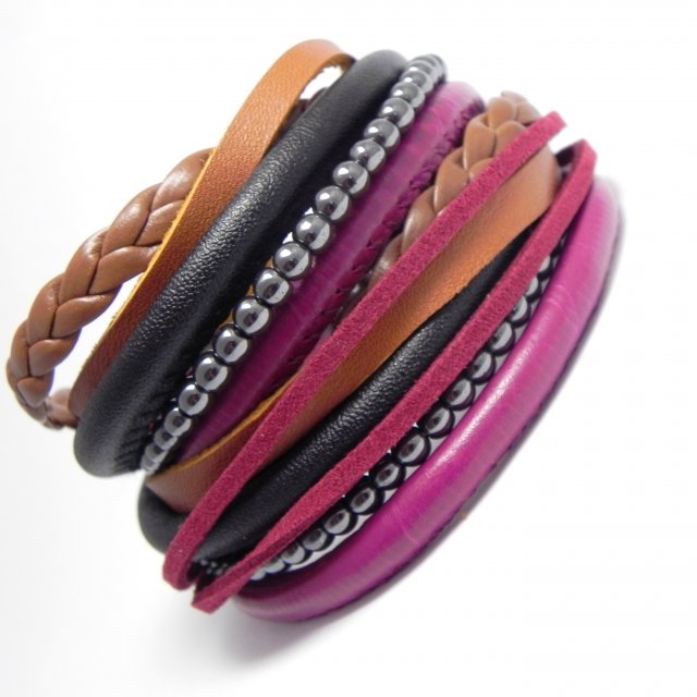 Bransoletka z serii 2w1, dla wielbicielek i kamieni, i rzemyków, przeznaczona do dwukrotnego owinięcia wokół nadgarstka, wykonana została tylko w JEDNYM EGZEMPLARZU, z rzemieni ze skóry naturalnej i ekologicznej, drobnych kuleczek hematytu (4 mm) oraz elementów metalowych w kolorze srebrnym. Będzie odpowiednia na nadgarstek 15,5-16 cm, model dość ścisło dopasowany do nadgarstka.
