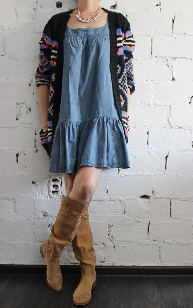 Dżinsowa sukienka z falbanką. Rozmiar 40/L. Wymiary: obwód biustu-44cmx2, owód bioder-65cmx2, długość-87cm.