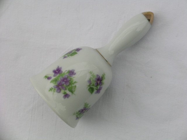 Urokliwy, porcelanowy, leciutki dzwoneczek, nie sygnowany, ale bardzo przyjemnie wykonany, złocony, na błyszcząco szkliwiony, w miłych proporcjach. 4,5 x ponad 9 cm. Stan zachowania bardzo dobry.