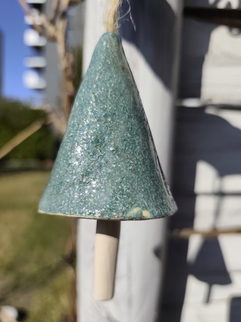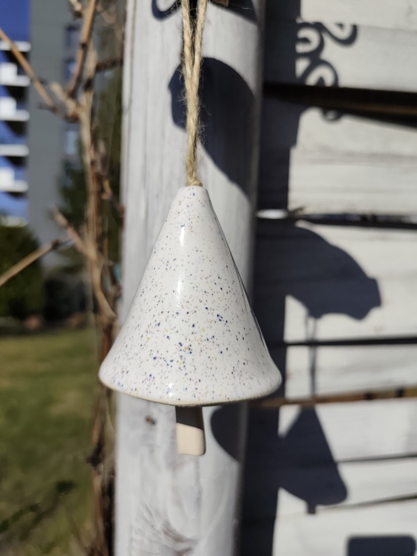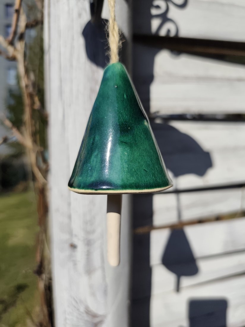 Dzwoneczek ceramiczny uroczy dodatek do Twojego ogrodu lub na balkon. Ulepiony ręcznie z jasnej gliny, szkliwiony i dwukrotnie wypalany w piecu ceramicznym na 1050 stopni. Posiadam 2 ciemnozielone, 2 zielone i 1 biały.