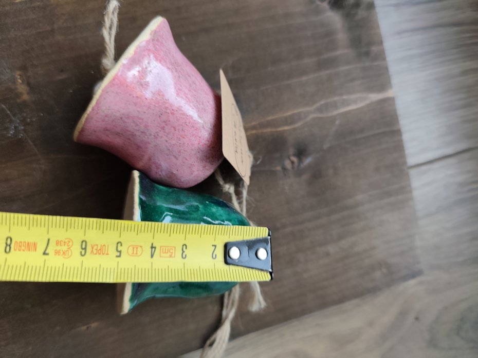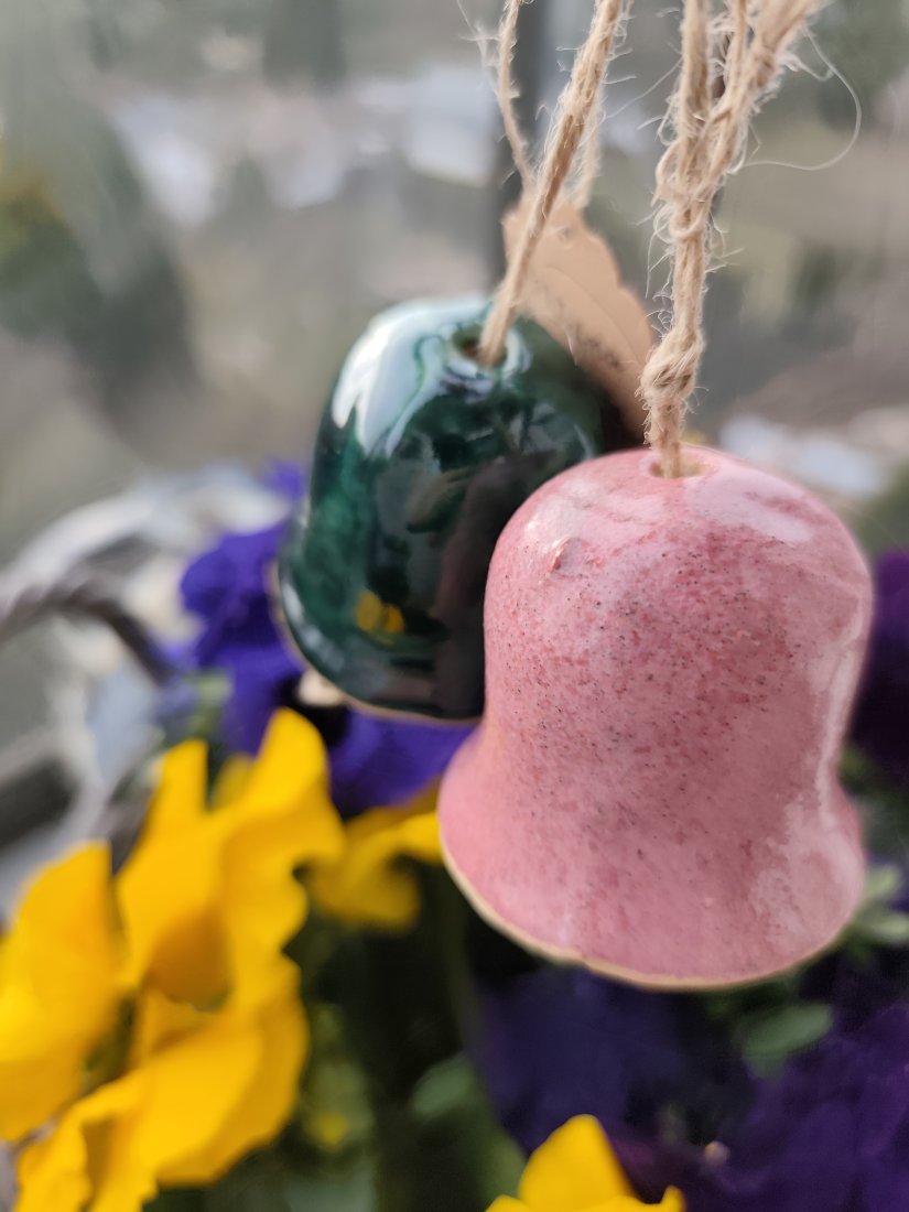 Dzwonki ceramiczne, wykonane ręcznie, szkliwione pięknymi kolorami, dwukrotnie wypalane w piecu ceramicznym. Polecam ten uroczy dodatek.