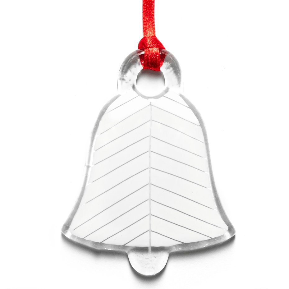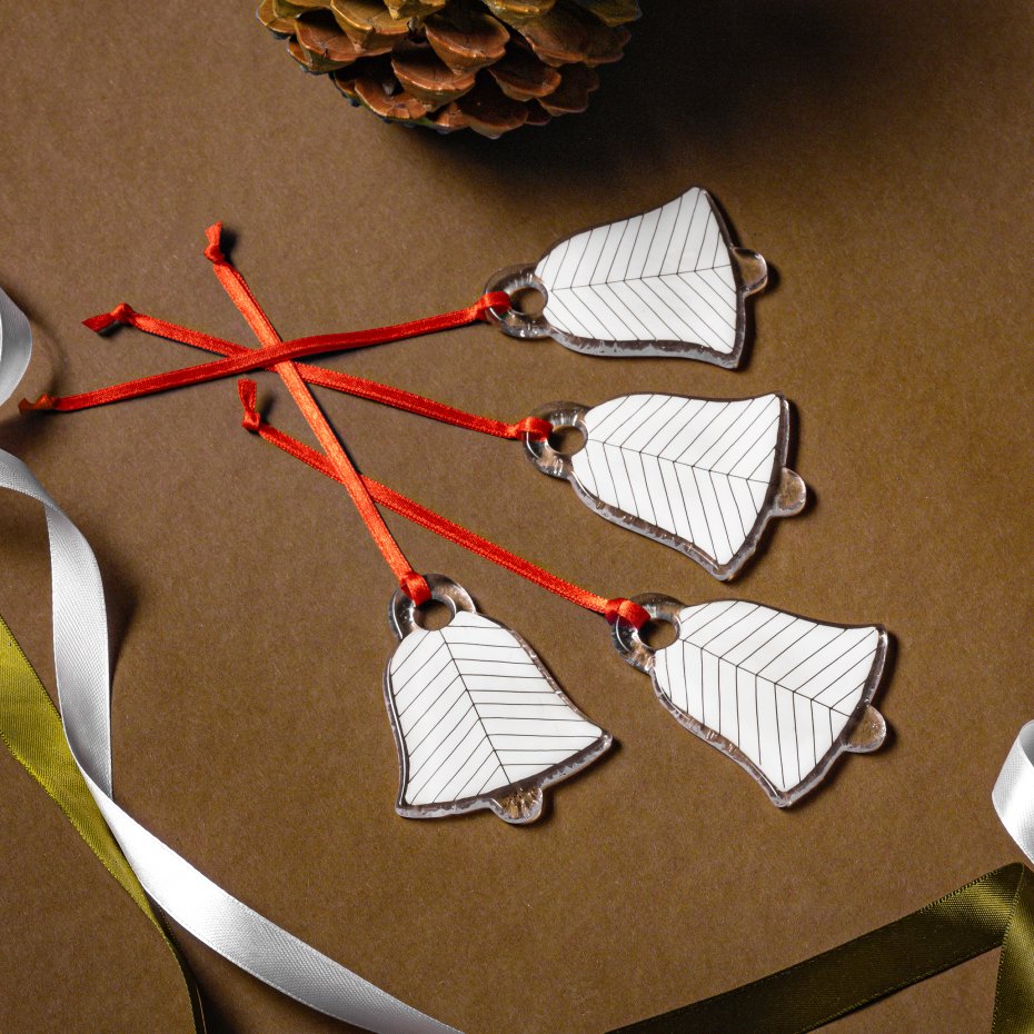Autorska świąteczna zawieszka na choinkę wykonana ze szkła metodą fusingu. Ozdoba wykonana ze szkła bezbarwnego z ręcznie malowanym i wypalanym wzorem na powierzchni. Spód szkła posiada delikatną fakturę ciekawie odbijającą światło.