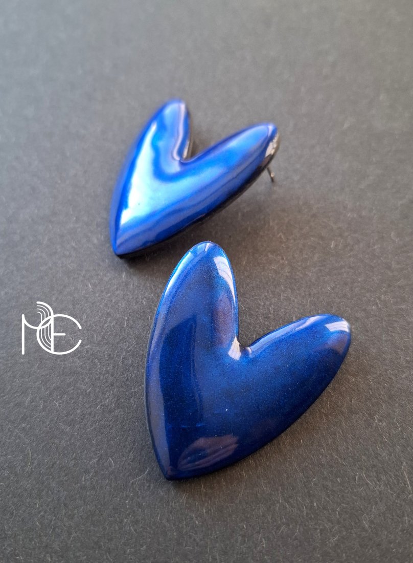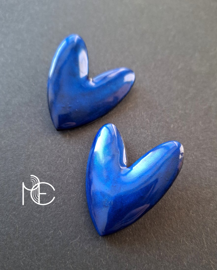 Efektowne, lekkie kolczyki na sztyfty wykonane z wysokiej jakości glinki polimerowej. Jednostronne z posrebrzanymi, nieuczulającymi sztyftami. Wymiary: długość wraz z zapięciem: 4,5 cm; szerokość max. 3,8 cm. Wykonane w jedynym egzemplarzu.