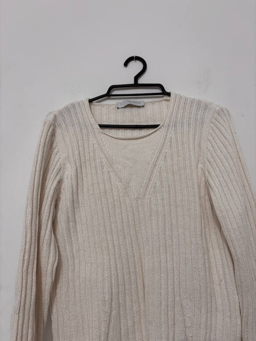 women sweater, ecru sweater, ribbed sweater, V neck sweater, italian sweater, premium knit, made in italy sweater, elegant sweater, classic knit, light sweater, cotton sweater, soft knit, everyday sweater, minimal sweater, long sleeve sweater, chic knit, warm knitwear, casual sweater, basic knit, ladies sweater