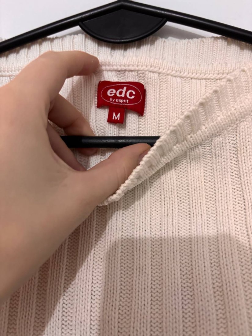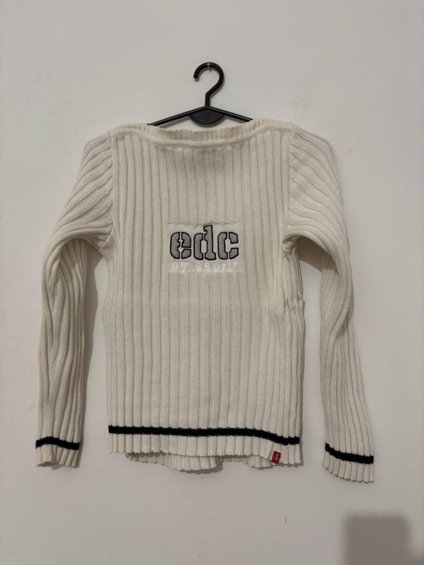 sweter bawełna edc esprit biały prążkowany haft logo klasyczny basic ciepły wygodny dopasowany casual jesień zima minimalizm damski codzienny stylowy modny