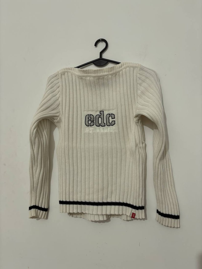 Klasyczny biały sweter marki EDC by Esprit, wykonany w 100% z miękkiej, oddychającej bawełny. Model prążkowany, elastyczny, idealnie dopasowuje się do sylwetki. Z tyłu znajduje się efektowny haftowany napis edc by esprit, który dodaje całości stylowego charakteru