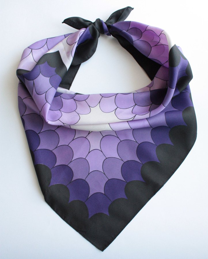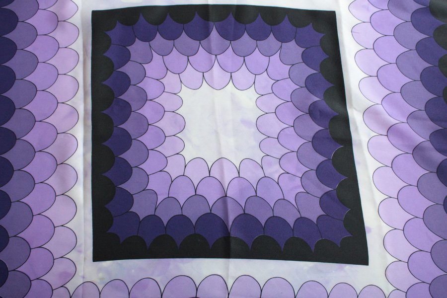 Efektowna chusta w różnych odcieniach fioletu. Odcienie miejscami przelewają się, jak na zdjęciu.