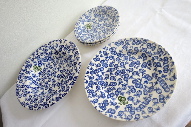 EIT- English Ironstone Made in England. Angielskie, ceramiczne talerze z oryginalnym [ już nie produkowanym ] wzorem niebieskiej wiśni [ z jedną zieloną ]. Wzór nadrukowany niejednolicie, mocniejsze i lżejsze nasycenie.