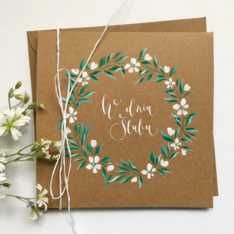 ślubna, na papierze kraft, malowane kwiaty, kaligrafowana, oryginalna
