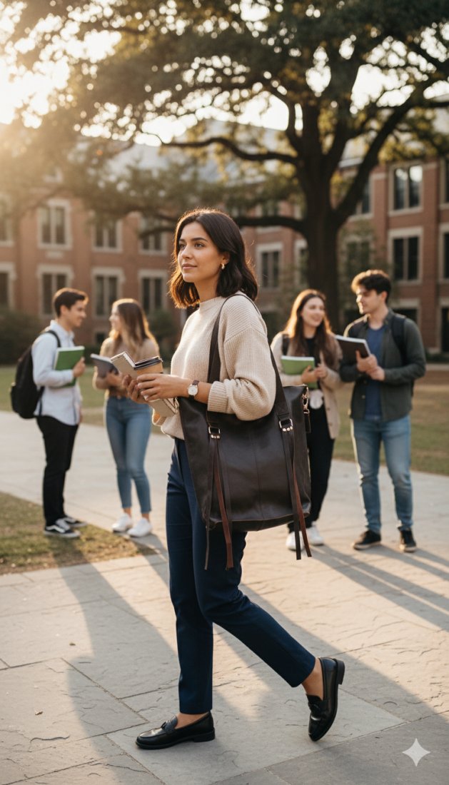 - Detale: frędzle, zdobienia ze złotymi okuciami, regulowany pasek