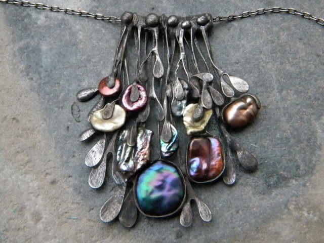 łańcuszek z posrebrzanej, oksydowanej miedzi z zapięciem z oksydowanego srebra o długości 49cm