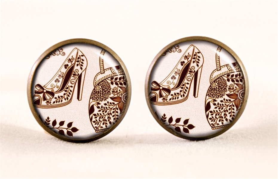 Ręcznie robione kolczyki sztyfty z wysokiej jakości grafiką pokrytą wypukłym, powiększającym szkiełkiem.