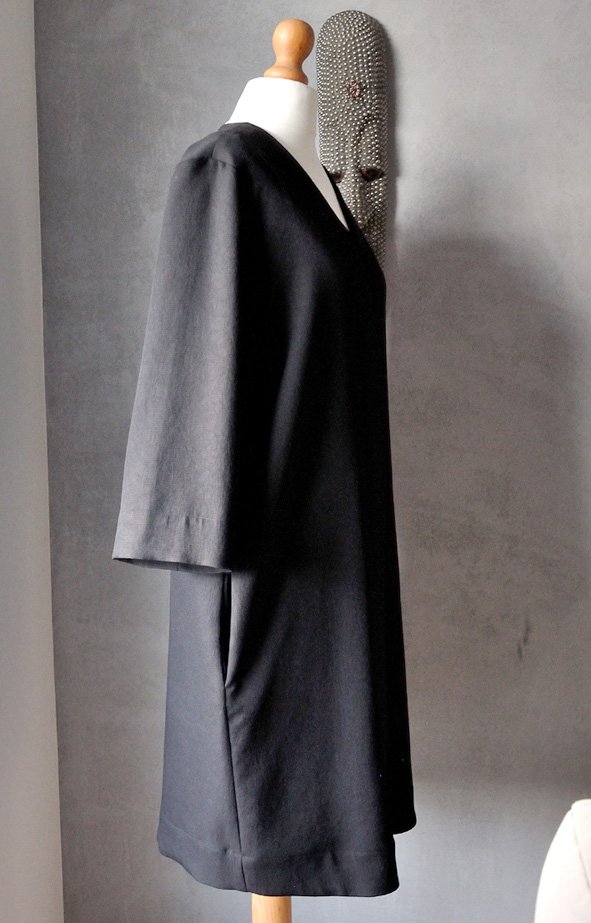 Rękawy szersze, długości 3/4. Na biodrach ukryte super przepastne kieszenie.