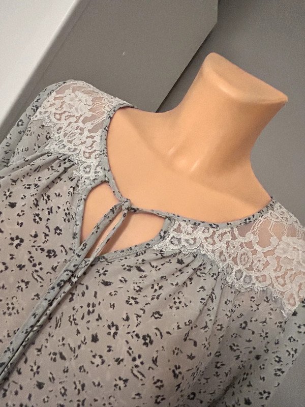 Elegancka bluzka Warehouse z koronką r. 38, idealna do biura, na imprezę.