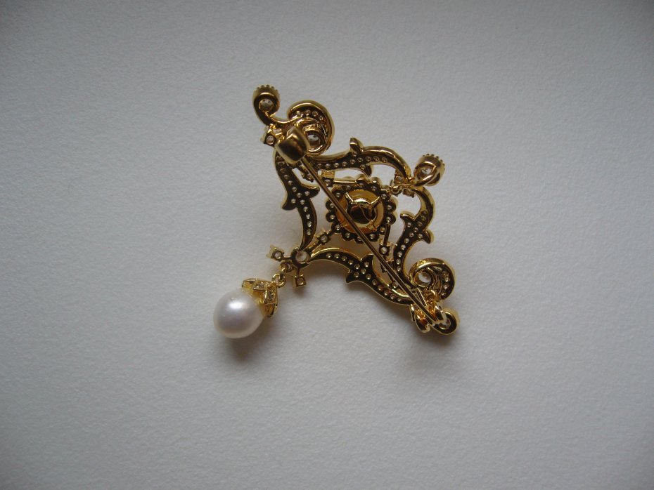 ELEGANCKA POZŁACANA BROSZKA WISIOR WYSADZANA CYRKONIAMI