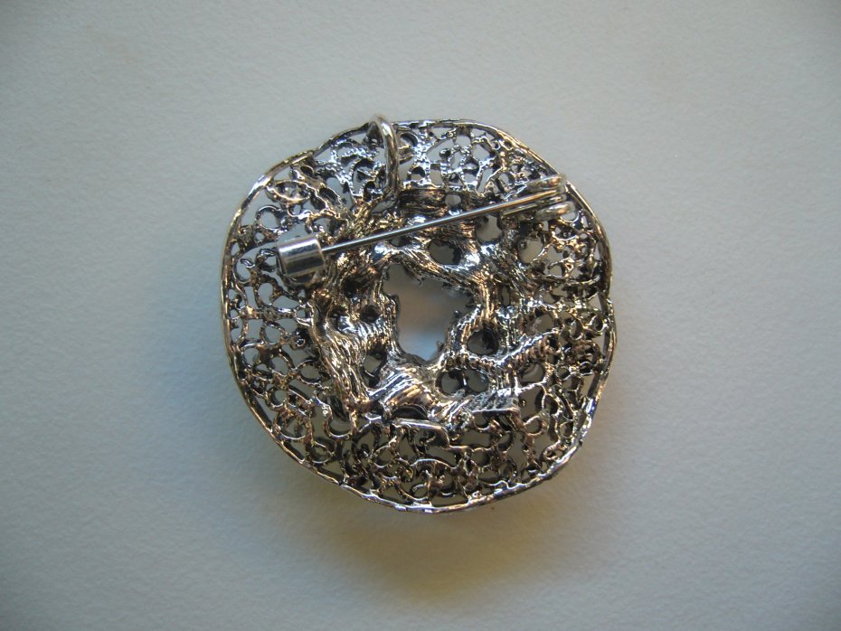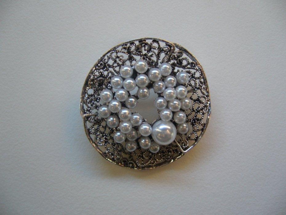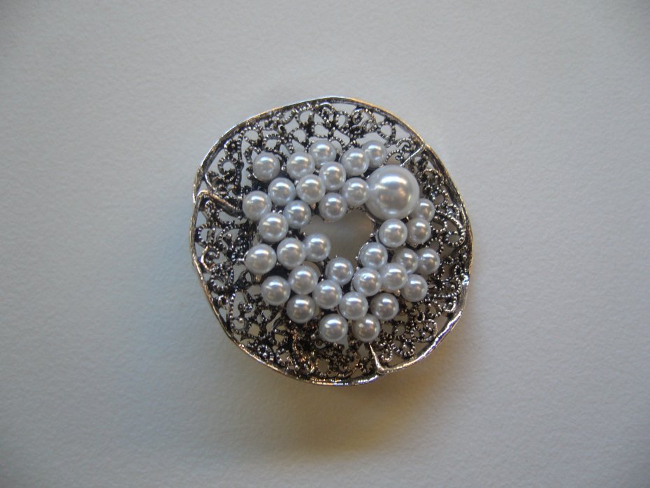 ELEGANCKA POSREBRZANA BROSZKA WISIOR ROZETA ZDOBIONA PERŁAMI
