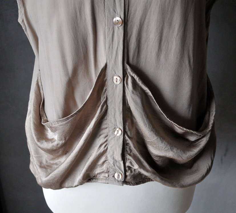Na spodzie z przodu ciekawa ozdoba: uszyte z połyskującej wiskozy, drapowane detale - można je uznać za kieszenie.