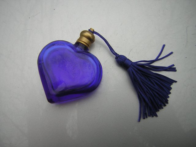 Gruboszklana Perfumetka. Ciekawy kształt. Nie sygnowana. Z metalową zakrętką z gwintem w szlachetnym złotym wykończeniu . Wykończenie - również chabrowo kobaltowy chwost. Elegancka i kobieca. Do łazienki, buduaru i na oryginalny prezent. 4,5 x 6 x 1,5 cm chwost ma około 7 cm długości całkowitej.